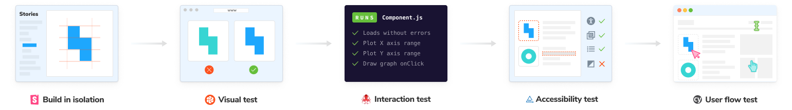 Our workflow reduces the maintenance burden by reusing stories as test cases. Plus, we can spot bugs faster by testing at the component level.
