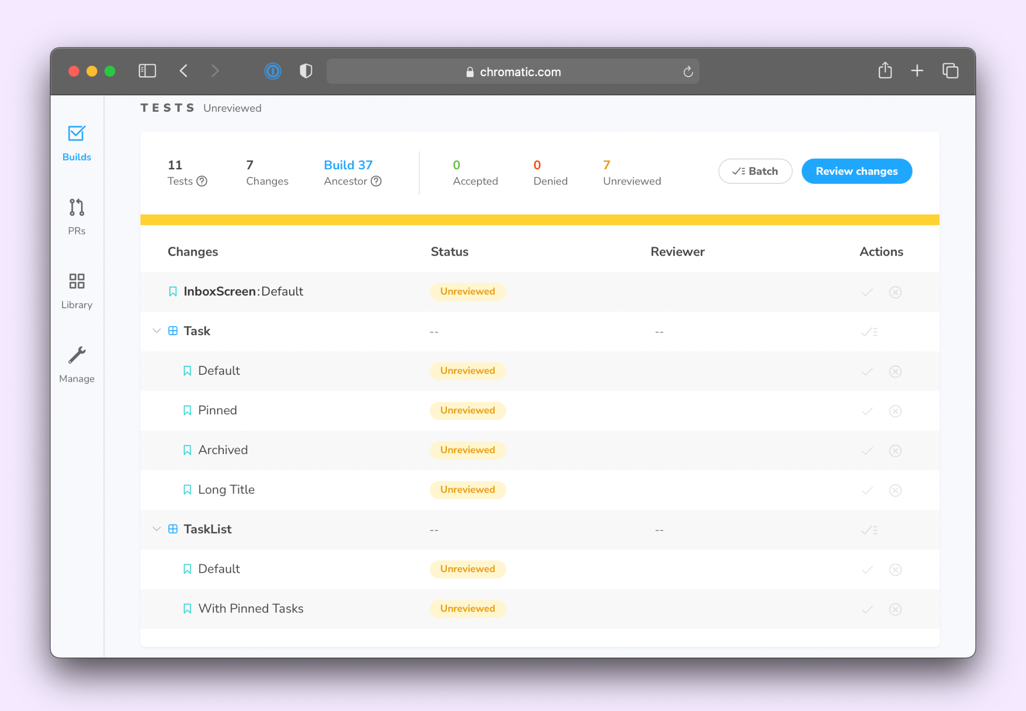 Tweaks to the Task UI can lead to unintended changes in other components where it's used: TaskList and InboxScreen. Running visual tests with Chromatic will catch those. It'll also ensure that everything is still wired up correctly.